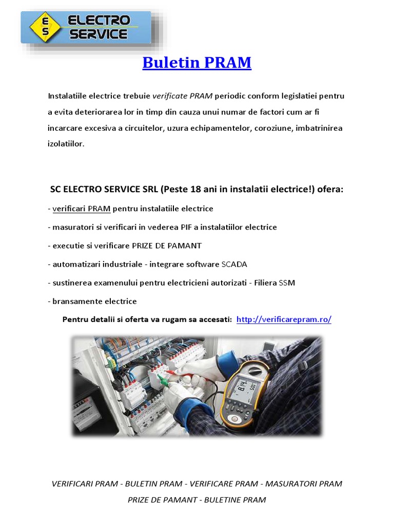 - verificari PRAM pentru instalatiile electrice