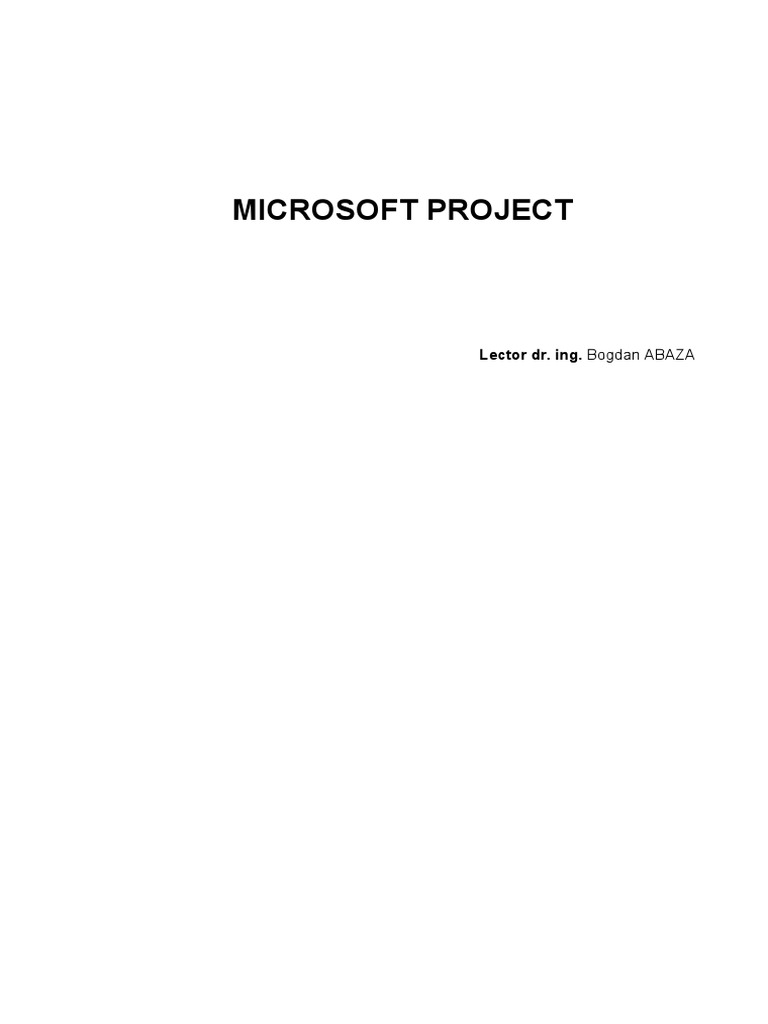 1. *****, Microsoft Project, Documentaia Help a aplicaiei software.