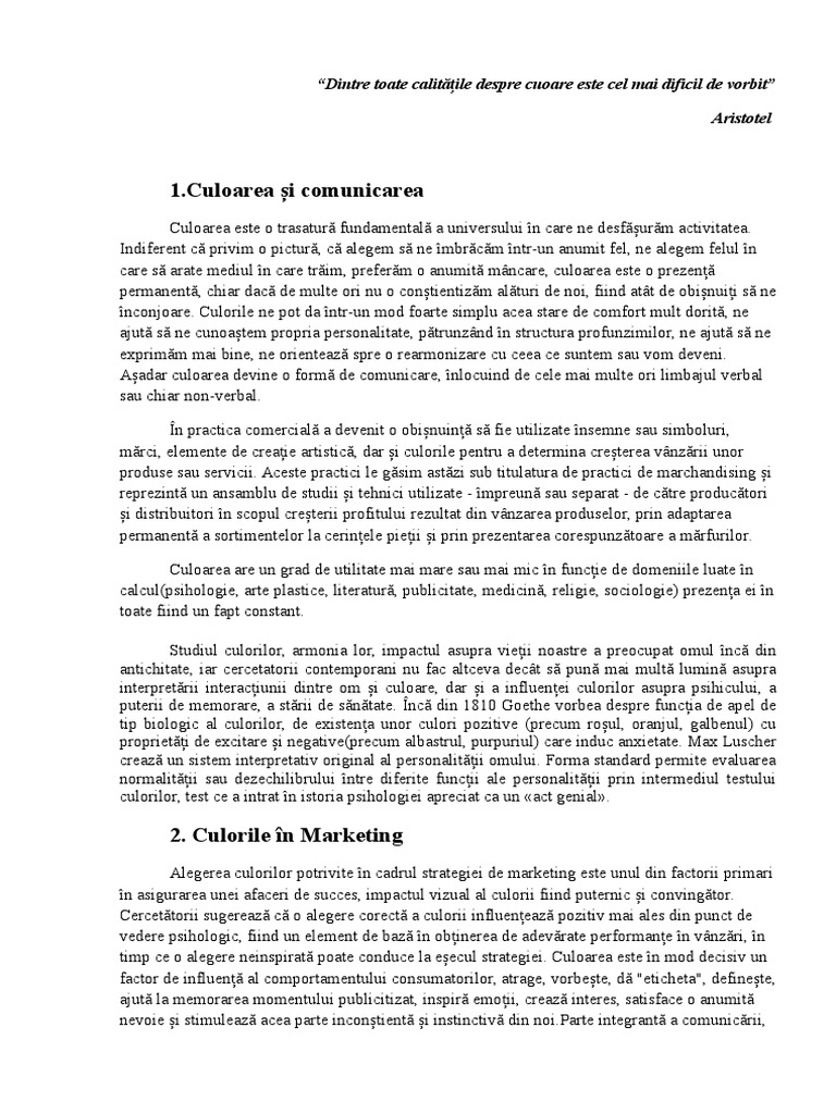 legerea culorilor potrivite n cadrul strategiei de [Link] este unul din factorii primari