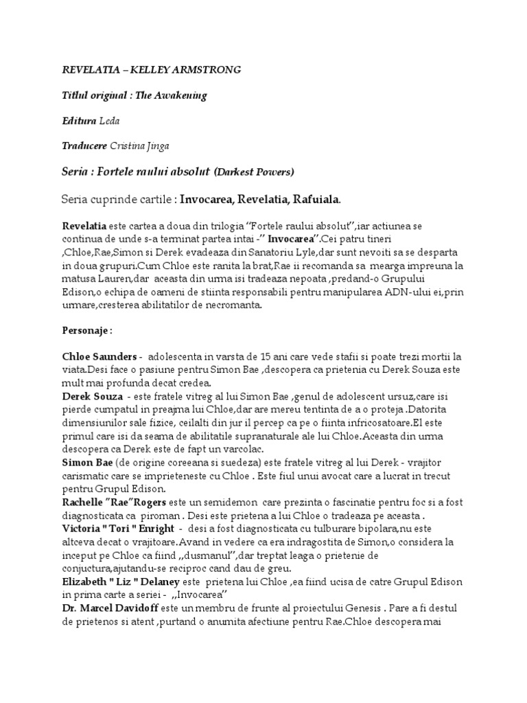 Revelatia este cartea a doua din trilogia Fortele raului absolut,iar actiunea se