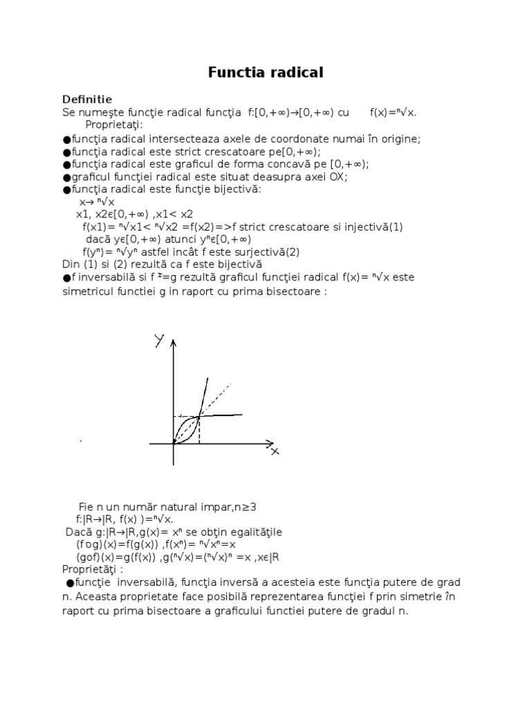 Se numete funcie radical funcia f:[0,+)[0,+) cu f(x)=x.