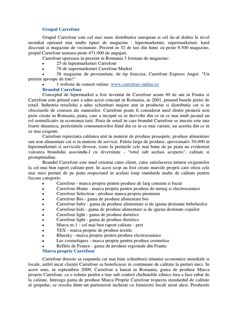 rol semnificativ in economia tarii. Piata de retail in care brandul Carrefour se inscrie este una