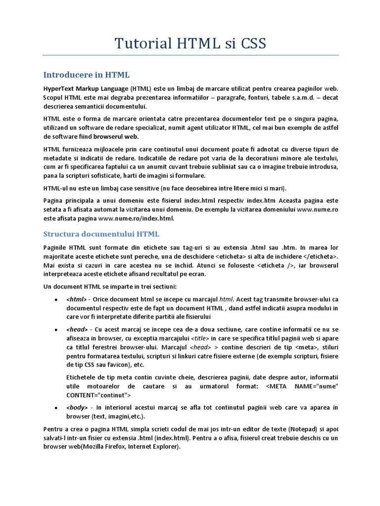 Introducere in HTML
