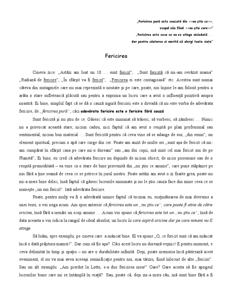 oricine, însă fără a urmări un scop anume … Acum voi spune că fericirea este tot un „nu ştiu ce”, însă de