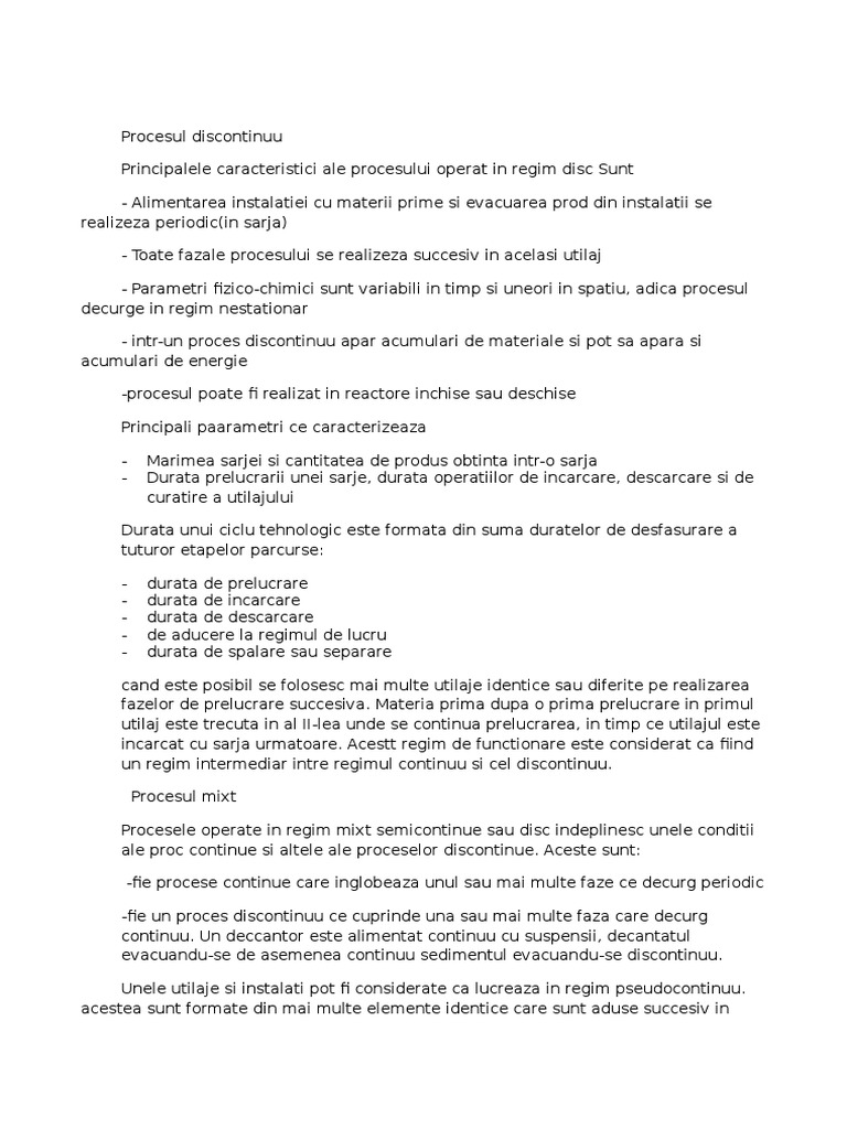 Principalele caracteristici ale procesului operat in regim disc Sunt