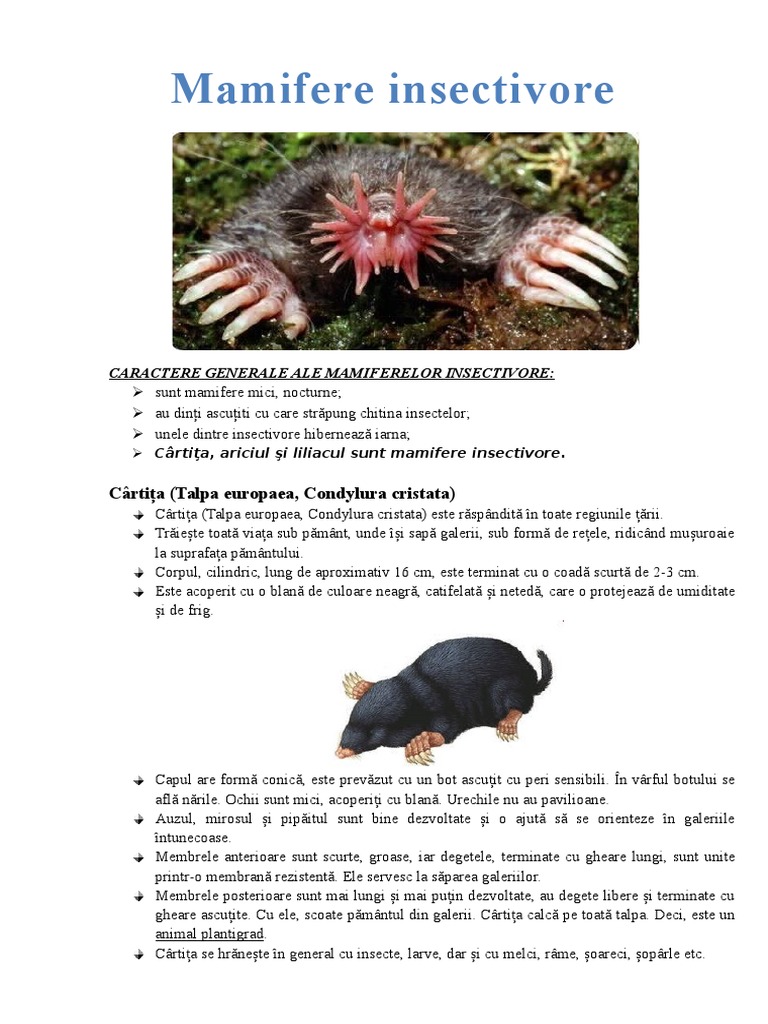 Crtia, ariciul i liliacul sunt mamifere insectivore.