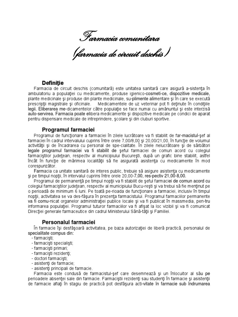 Farmacia de circuit deschis (comunitar) este unitatea sanitar care asigur a-sistena n