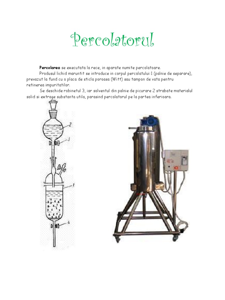 Percolarea se executata la rece, in aparate numite percolatoare.