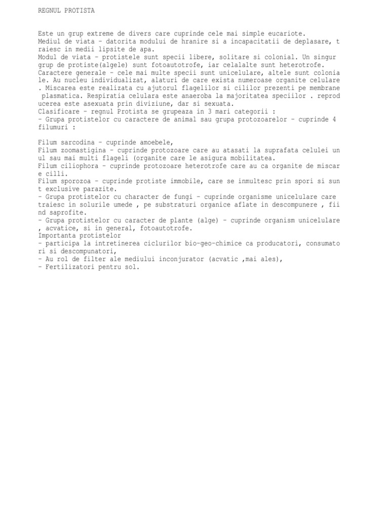 Modul de viata - protistele sunt specii libere, solitare si colonial. Un singur