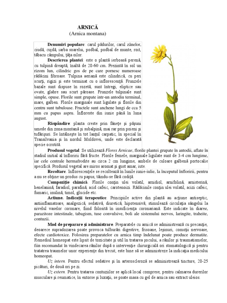 Compoziie chimic. Florile conin ulei volatil, arnidiol, arnifolin, arnisterin,