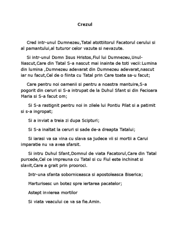 Cred intr-unul Dumnezeu,Tatal atottiitorul Facatorul cerului si