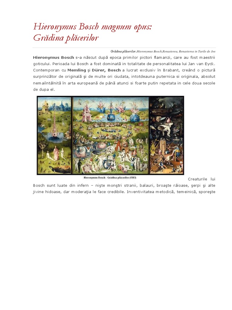 Mai trziu va executa i alte lucrri de dimensiuni mai mici. Arta lui Bosch, desi bizara, este