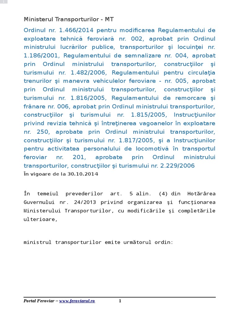 exploatare tehnic feroviar nr. 002, aprobat prin Ordinul