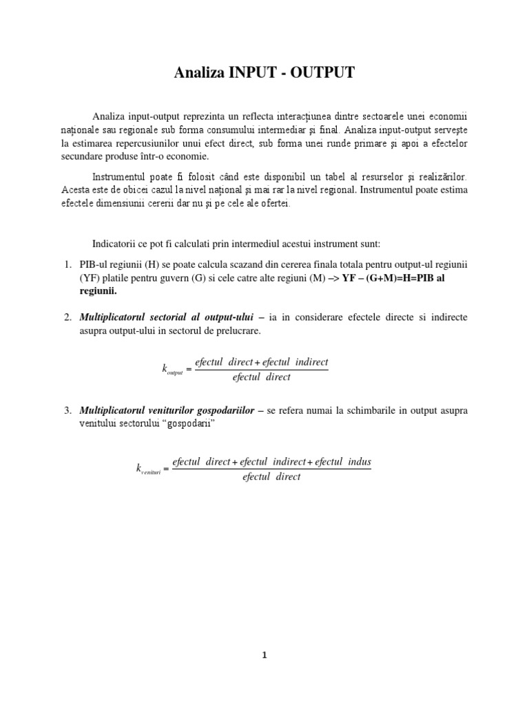 Analiza INPUT - OUTPUT