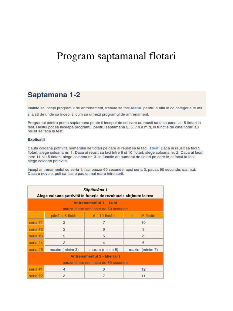test. Restul pot sa inceapa programul pentru saptamana 2, 5, 7 s.a.m.d, in functie de cate flotari au