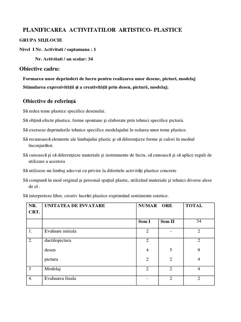 PLANIFICAREA ACTIVITATILOR ARTISTICO- PLASTICE