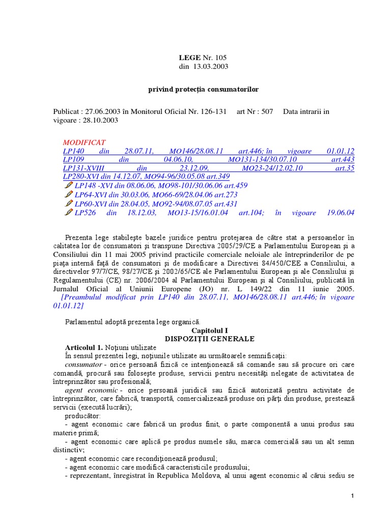 LP526 din 18.12.03, MO13-15/16.01.04 art.104; n vigoare
