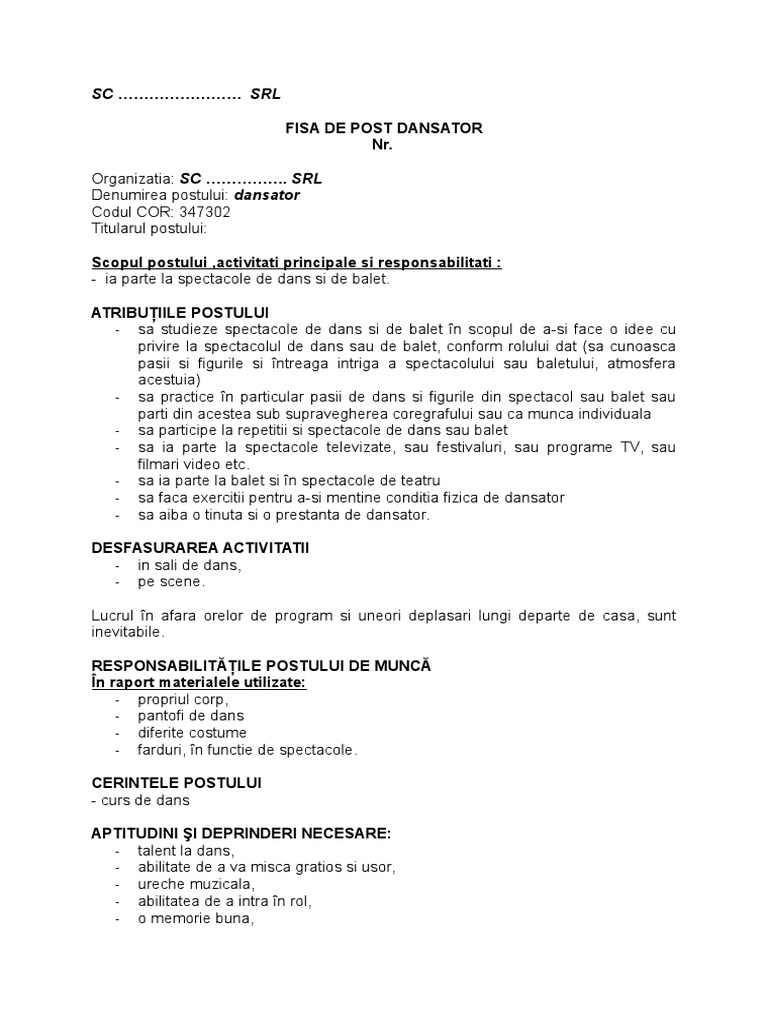 - sa faca exercitii pentru a-si mentine conditia fizica de dansator