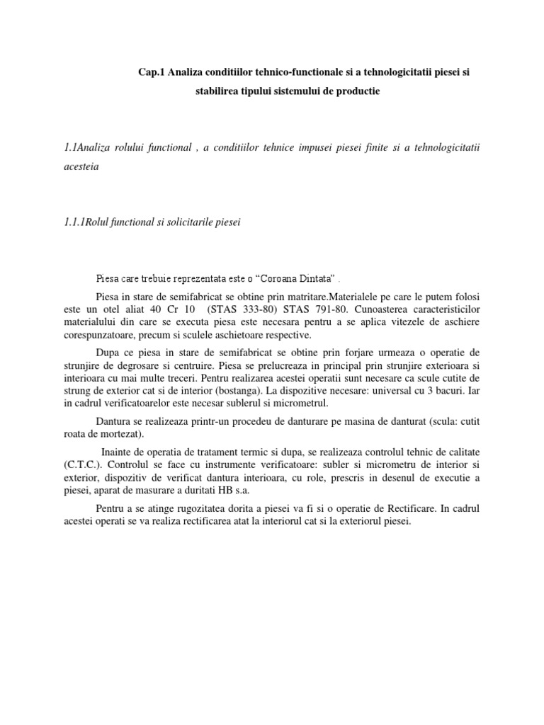 Astfel, verificarea tehnologicitatii piesei coroana dintata, vizeaza urmatoarele aspecte:
