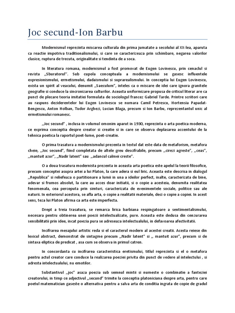 Joc secund-Ion Barbu