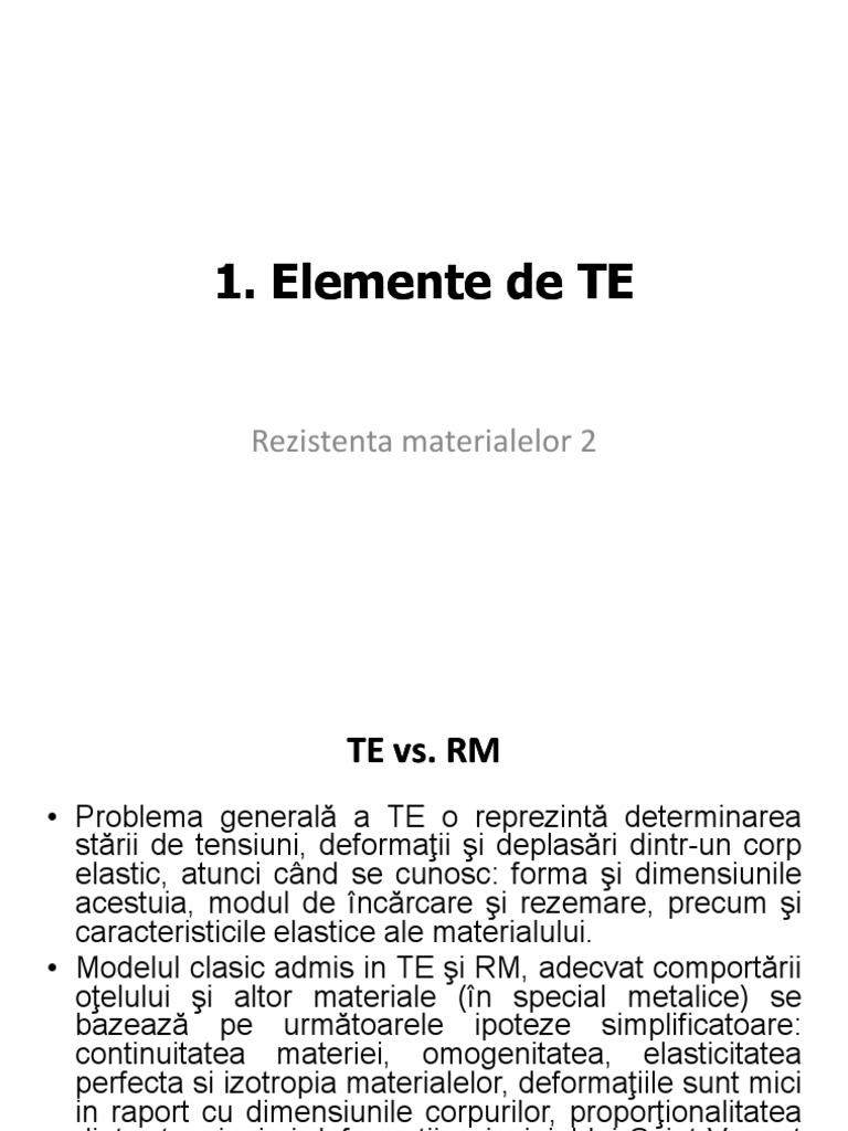 perfecta si izotropia materialelor, deformaiile sunt mici
