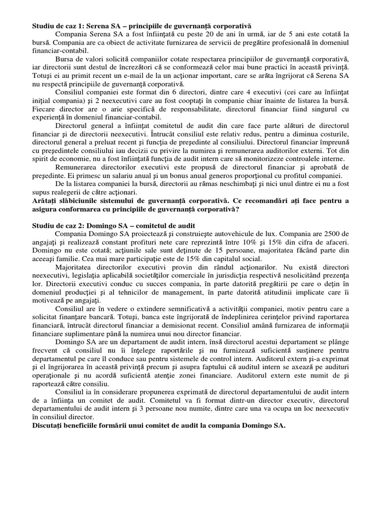 Studiu de caz 1: Serena SA principiile de guvernan corporativ