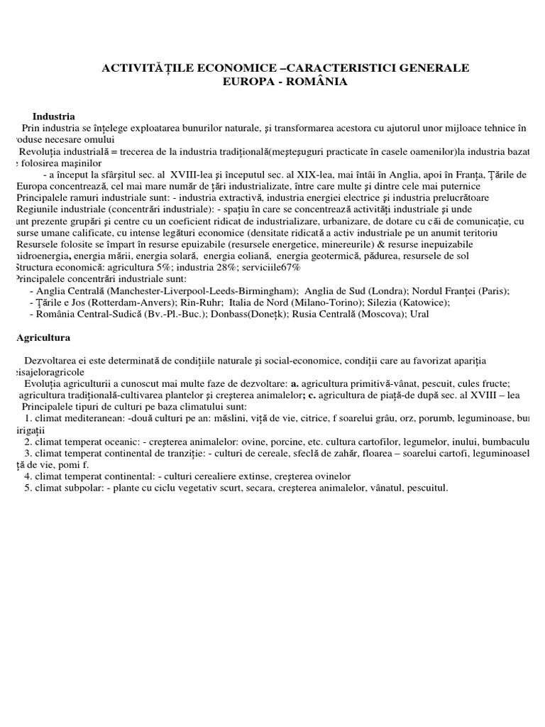 ACTIVITILE ECONOMICE CARACTERISTICI GENERALE
