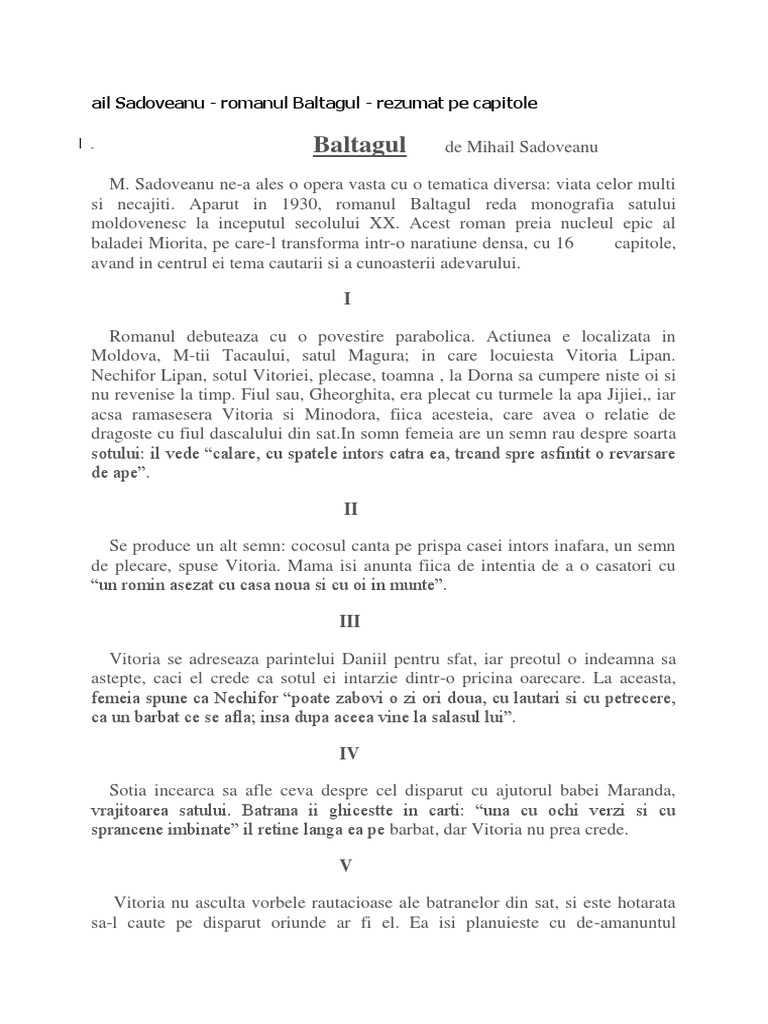 ail Sadoveanu - romanul Baltagul - rezumat pe capitole