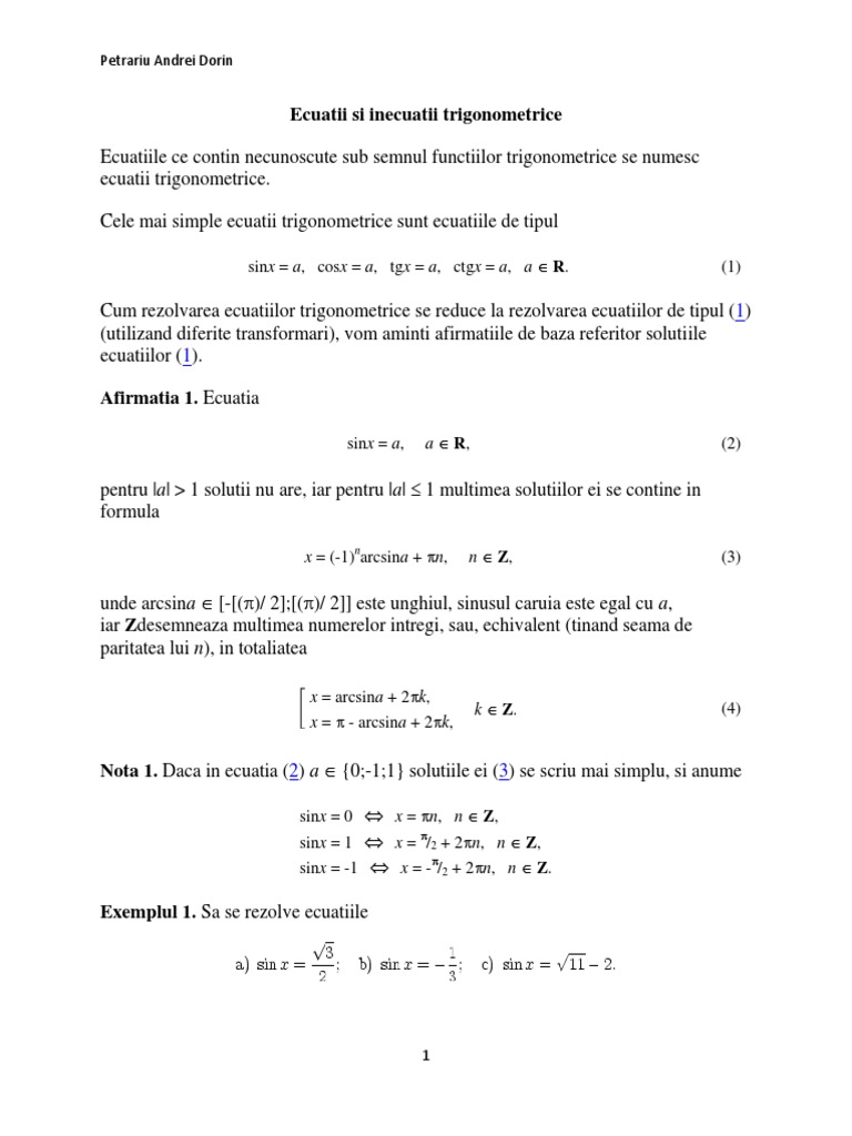 Cum rezolvarea ecuatiilor trigonometrice se reduce la rezolvarea ecuatiilor de tipul (1)
