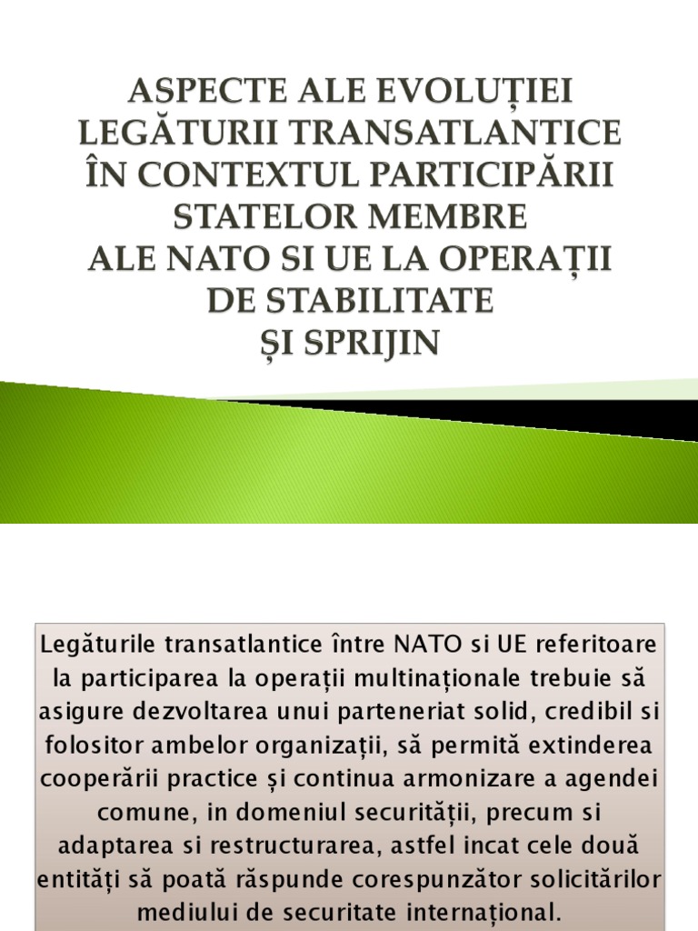 statele membre NATO i UE urmresc creterea nivelului de cooperare i obinerea unor rezultate