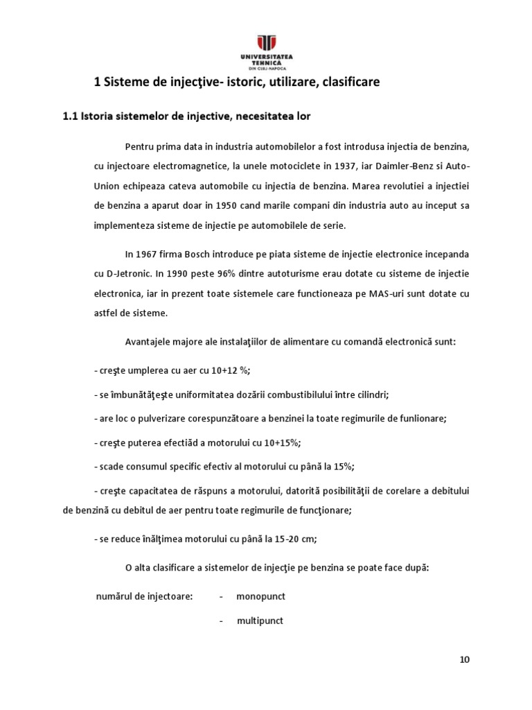 1 Sisteme de injecive- istoric, utilizare, clasificare