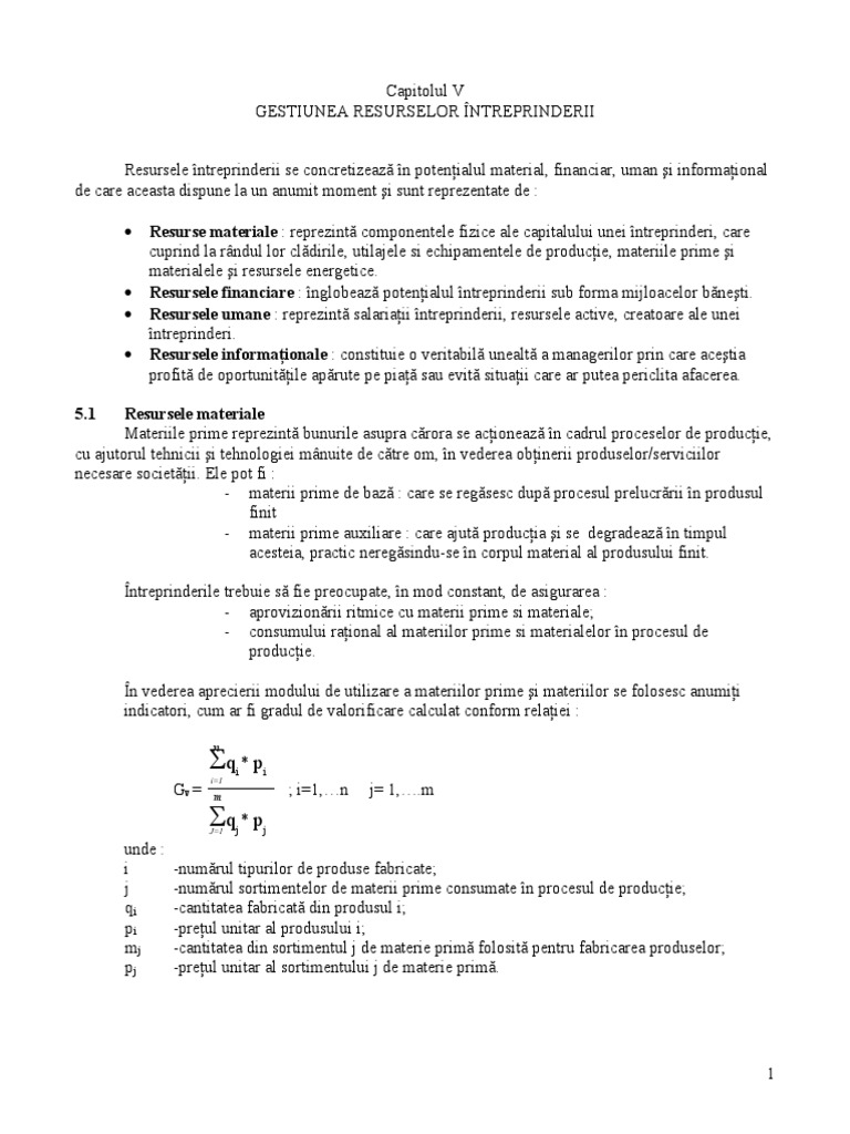 Resurse materiale : reprezint componentele fizice ale capitalului unei ntreprinderi, care