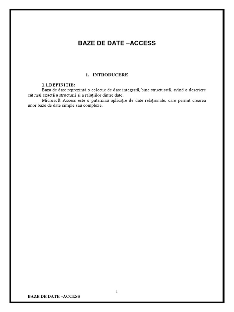 Microsoft Access este o puternic aplicaie de date relaionale, care permit crearea