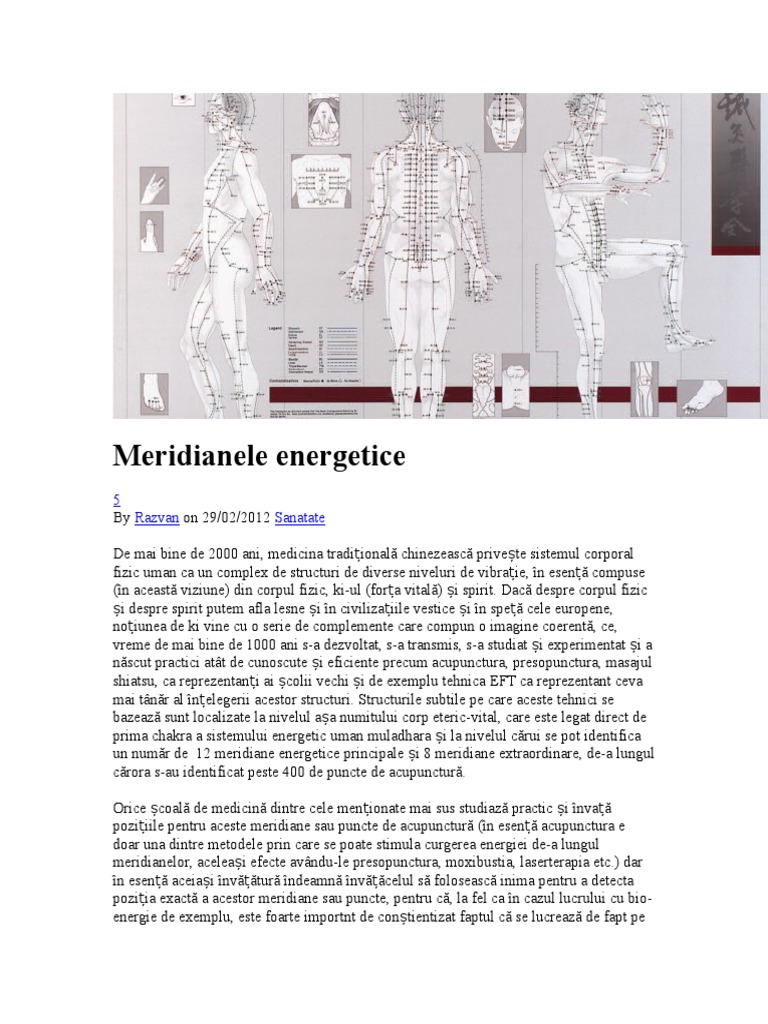poziiile pentru aceste meridiane sau puncte de acupunctur (n esen acupunctura e