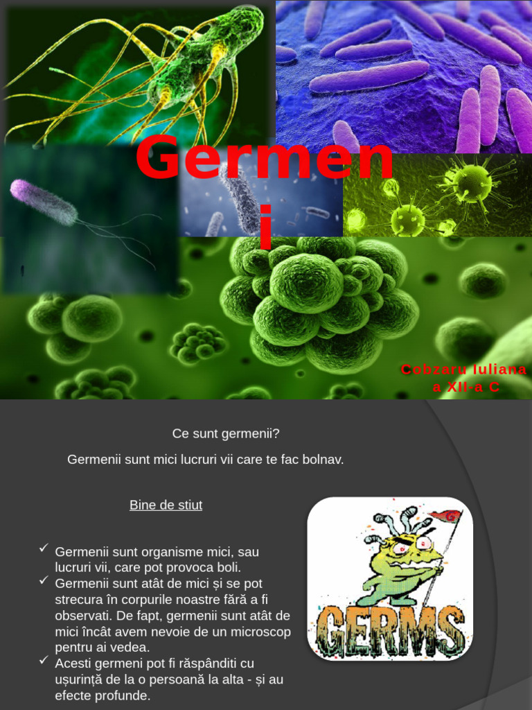 Germenii sunt mici lucruri vii care te fac bolnav.