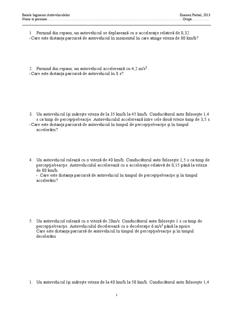 1. Pornind din repaus, un autovehicul se deplaseaz cu o acceleraie relativ de 0,32.