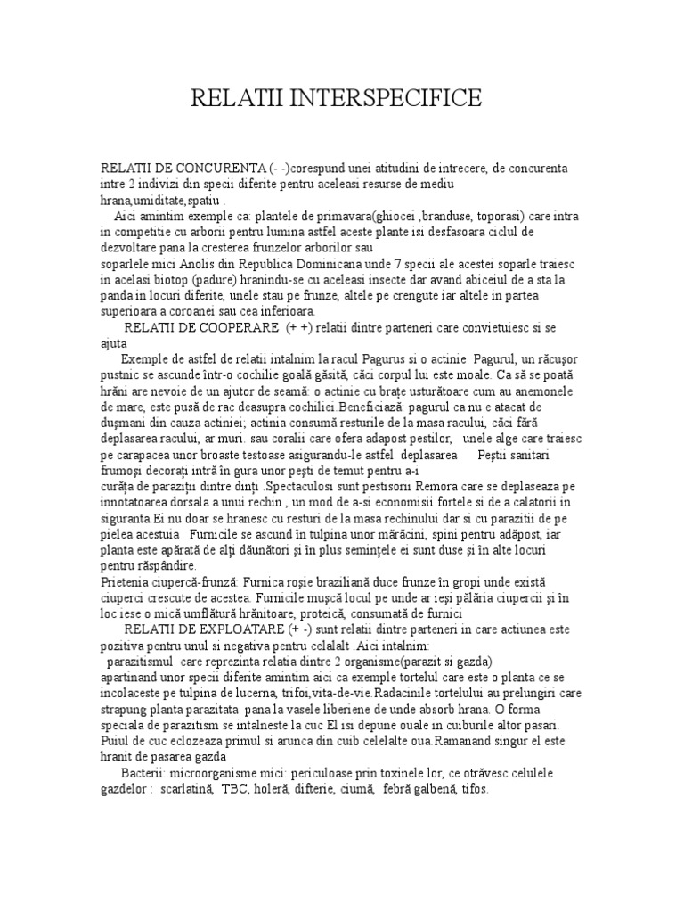 RELATII INTERSPECIFICE