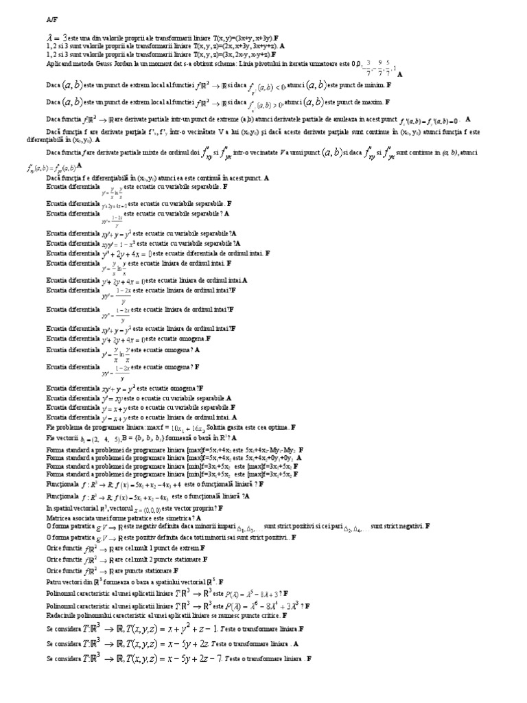 Forma standard a problemei de programare liniara [min]f=3x1+5x2 este [max]f=3x1+5x2 F