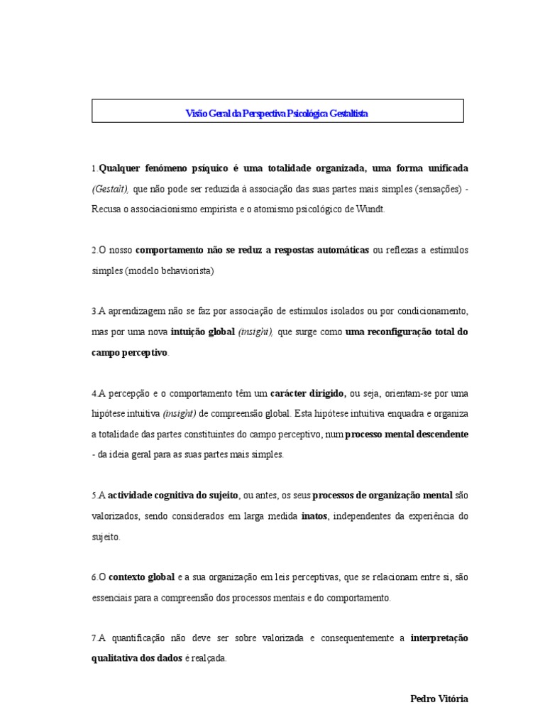 (Gestalt), que não pode ser reduzida à associação das suas partes mais simples (sensações) -