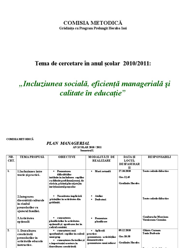 Not : n luna aprilie activitatea de perfecionare se va desfura n cadrul Cercului pedagogic.