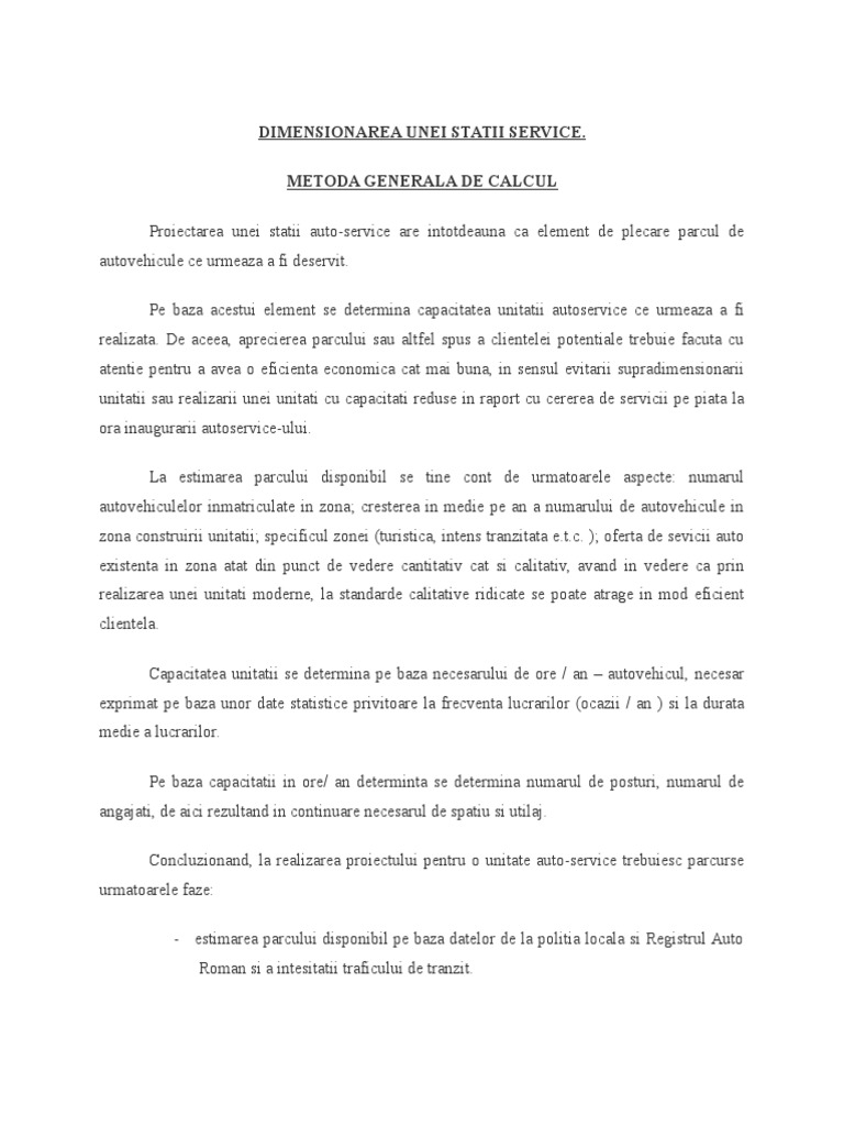 Proiectarea unei statii auto-service are intotdeauna ca element de plecare parcul de