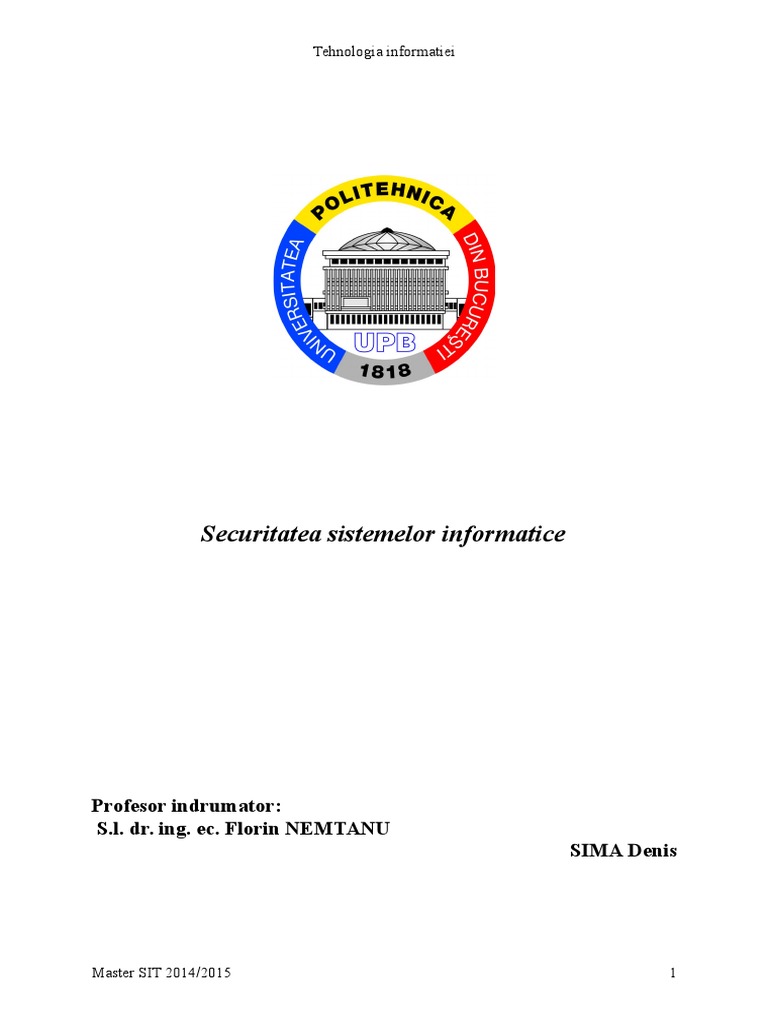 securitii sistemelor informatice, politicii de cifrare si al proteciei proprietii intelectuale.