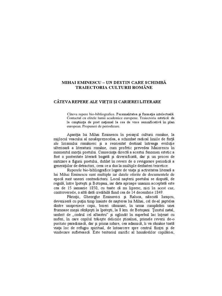 MIHAI EMINESCU UN DESTIN CARE SCHIMB