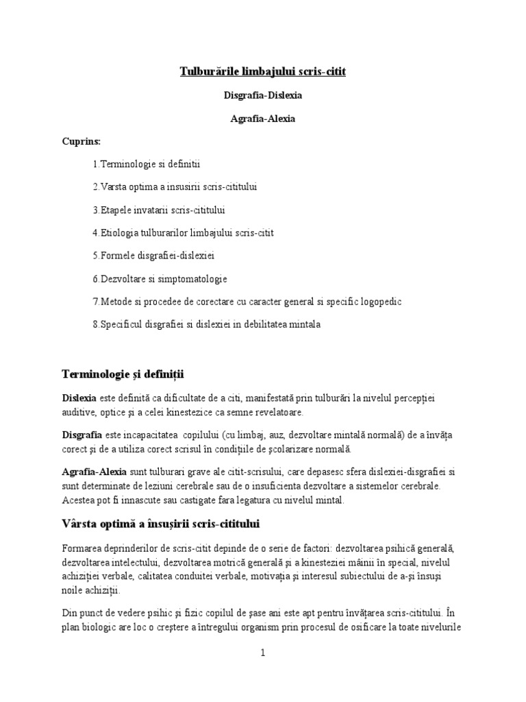 [Link] disgrafiei si dislexiei in debilitatea mintala
