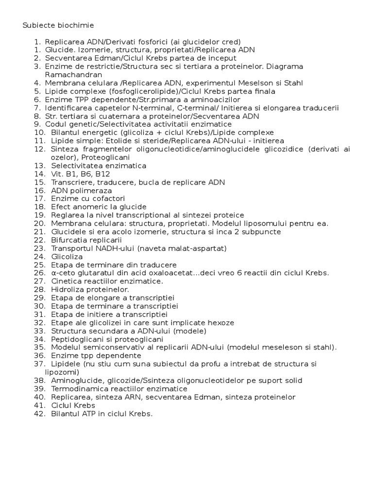 Subiecte biochimie