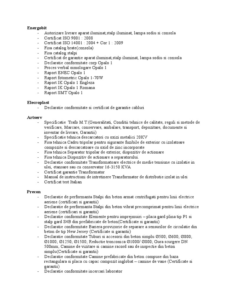 - Certificat de garantie aparat iluminat,stalp iluminat, lampa sodiu si consola