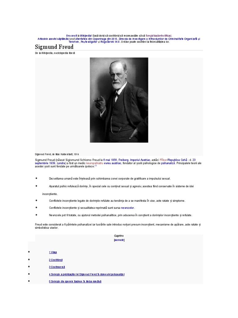 Sigmund Freud (nscut Sigismund Schlomo Freud la 6 mai 1856, Freiberg, Imperiul Austriac, astzi Pbor/Republica Ceh - d. 23