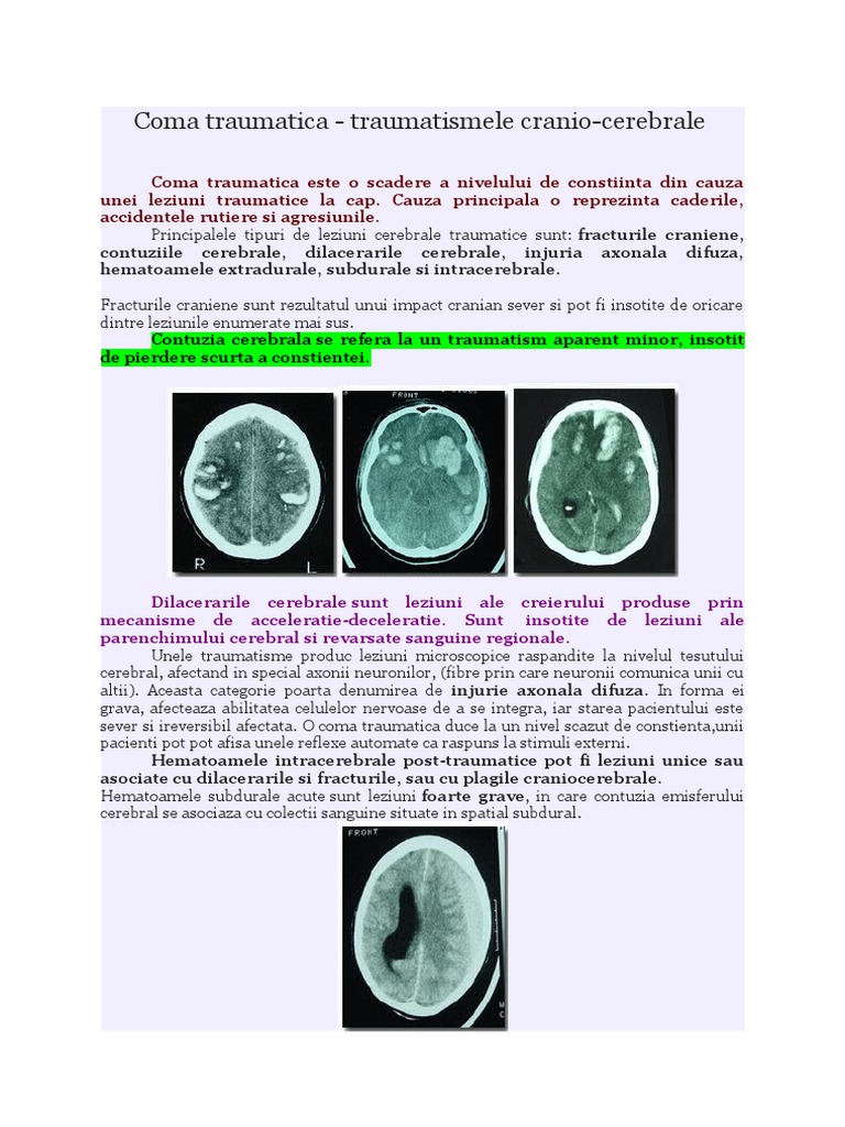 Coma traumatica - traumatismele cranio-cerebrale