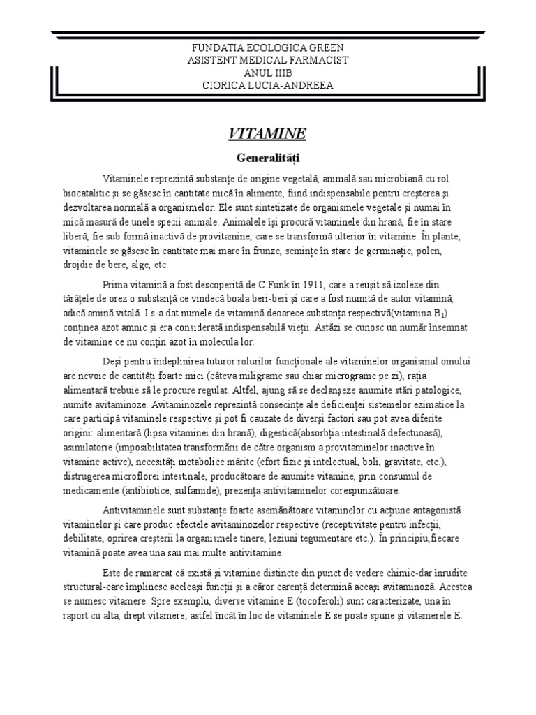 Vitaminele reprezint substane de origine vegetal, animal sau microbian cu rol
