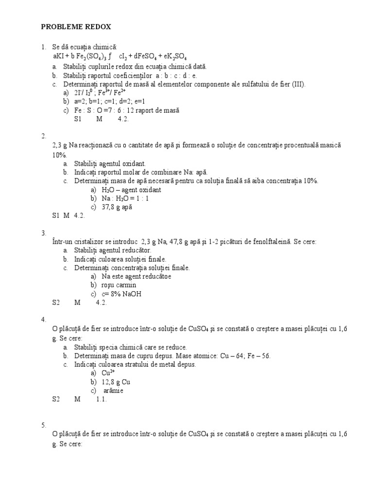 a. Indicai specia chimic care este oxidat i cea care este redus.